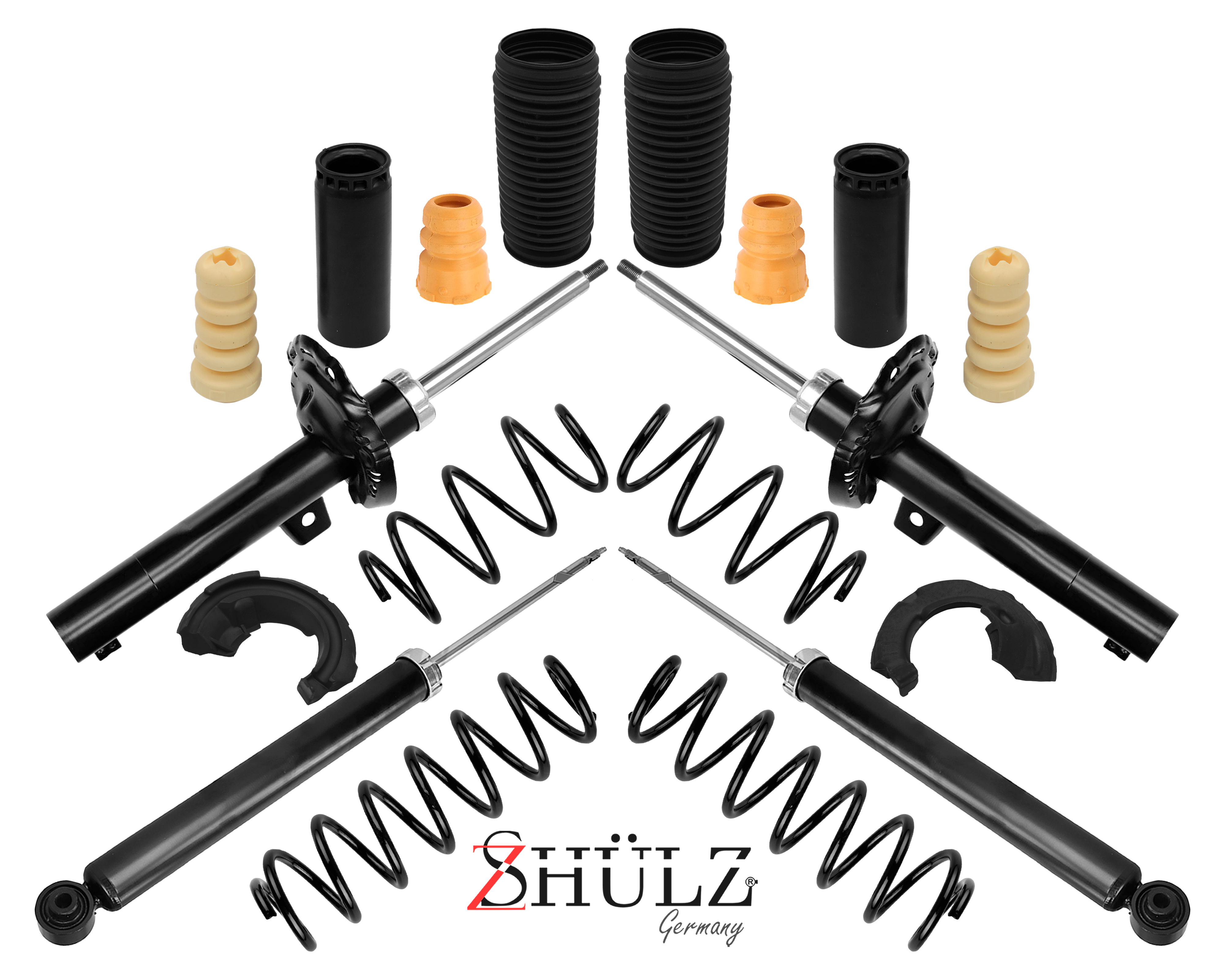2 AMORTIGUADOR DELANTERO COMPLETOS CON BASES, PLATILLOS, TOPES, RESORTES (ARMADOS LISTOS PARA INSTALARSE) (MARCA SHULZ DE GAS)