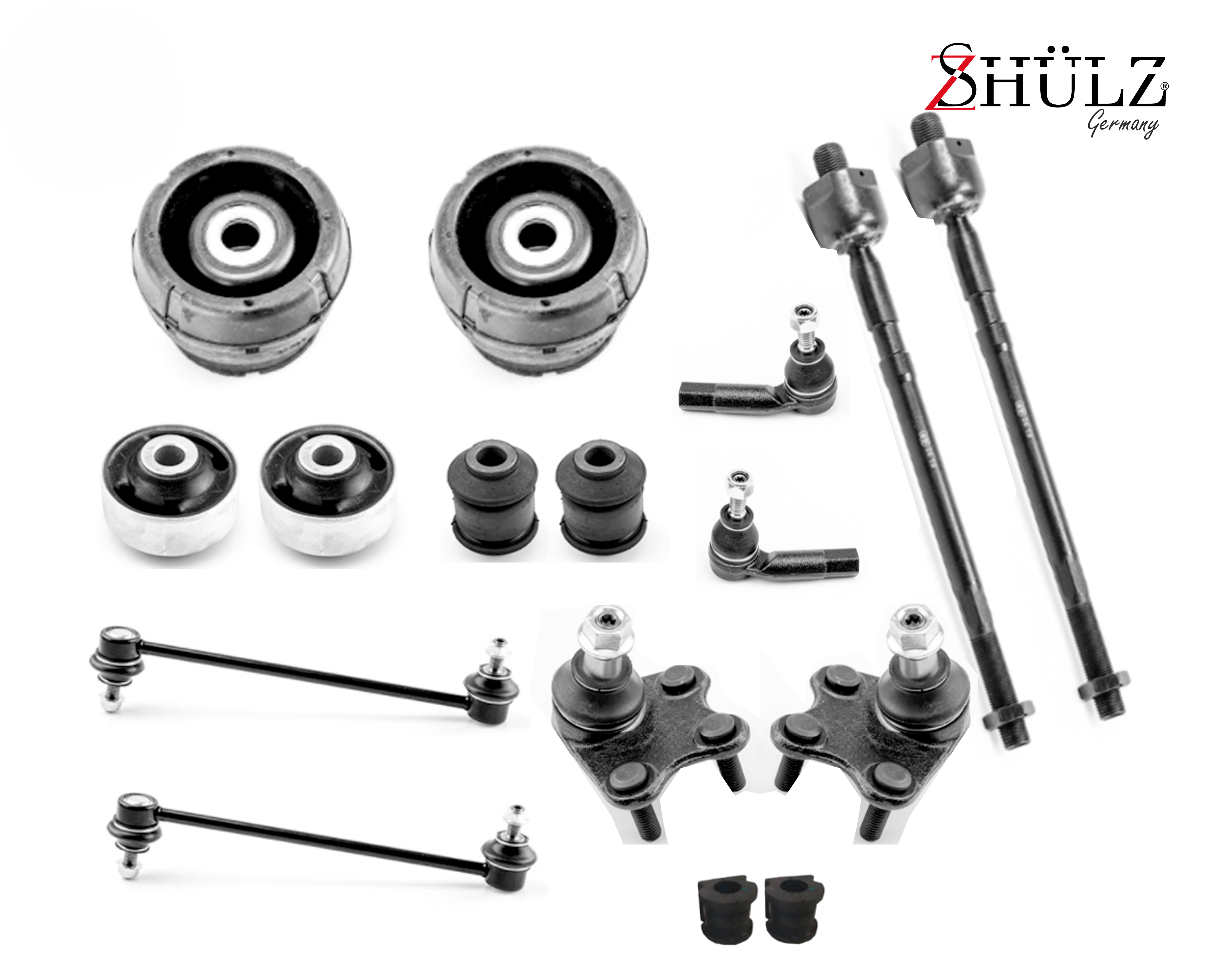 2 HORQUILLAS SUPERIORES COMPLETAS CON ROTULAS, BUJES Y BARRA