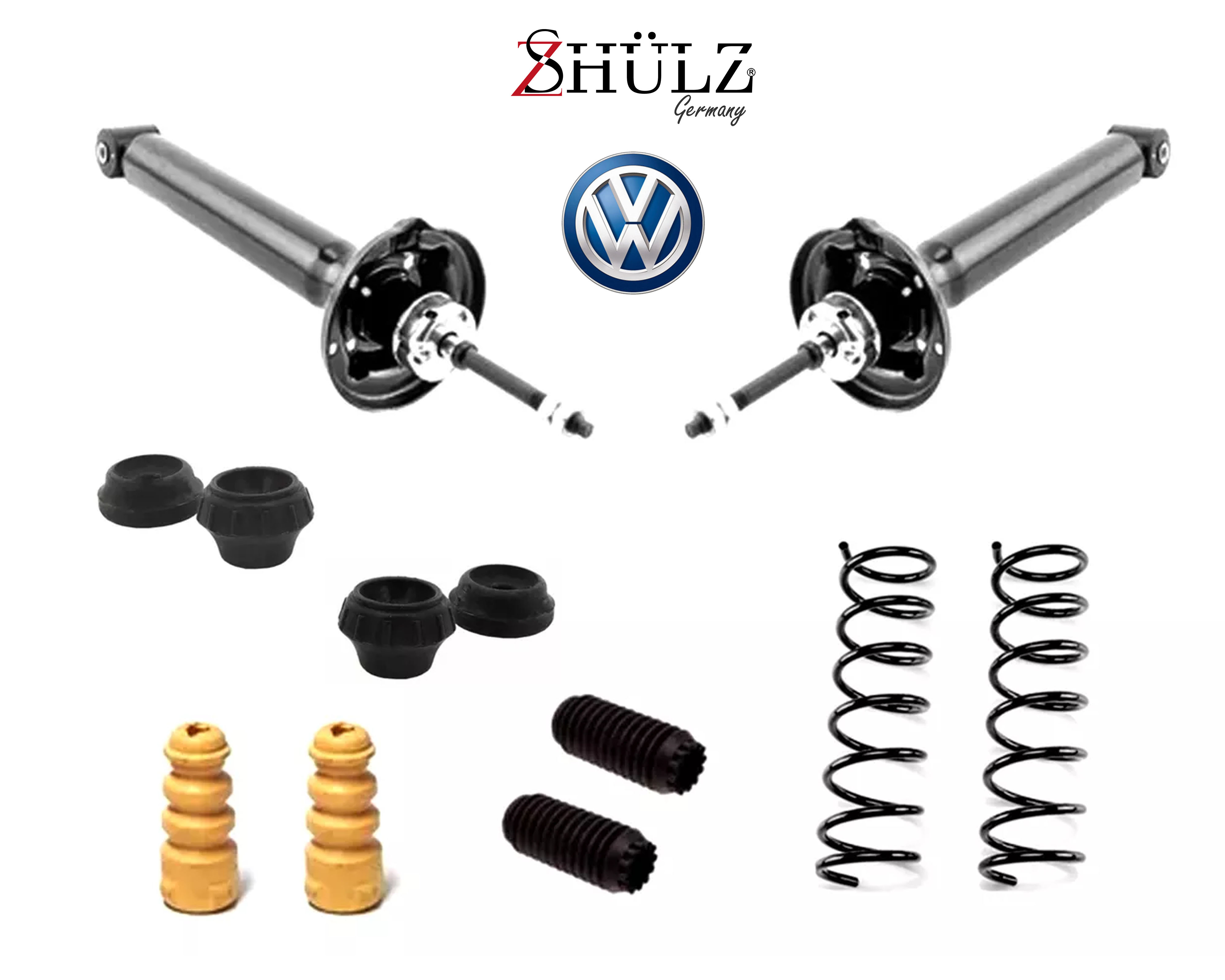 KIT ROTULAS, BIELETAS CON TERMINALES, BASES SE AMORTIGUADOR DELANTERAS, PLATILLO DE AMORTIGUADOR DELANTEROS, PPLATILLOS AMORTIGUADOR TRASEROS, REBOTES AMORTIGUADOR EN POLIURETANO DELANTEROS Y TRASEROS, TORNILLOS ESTABILIZADORES, BUJES Y GOMAS DE HORQUILLA, GOMAS DE BARRA ESTABILIZADORA DELANTERAS Y SOPORTES DE EJE TRASERO (BARQUITO) GOLF JETTA A3 93-99 DIRECCION HIDRAULICA MARCA SHULZ ORIGINAL.