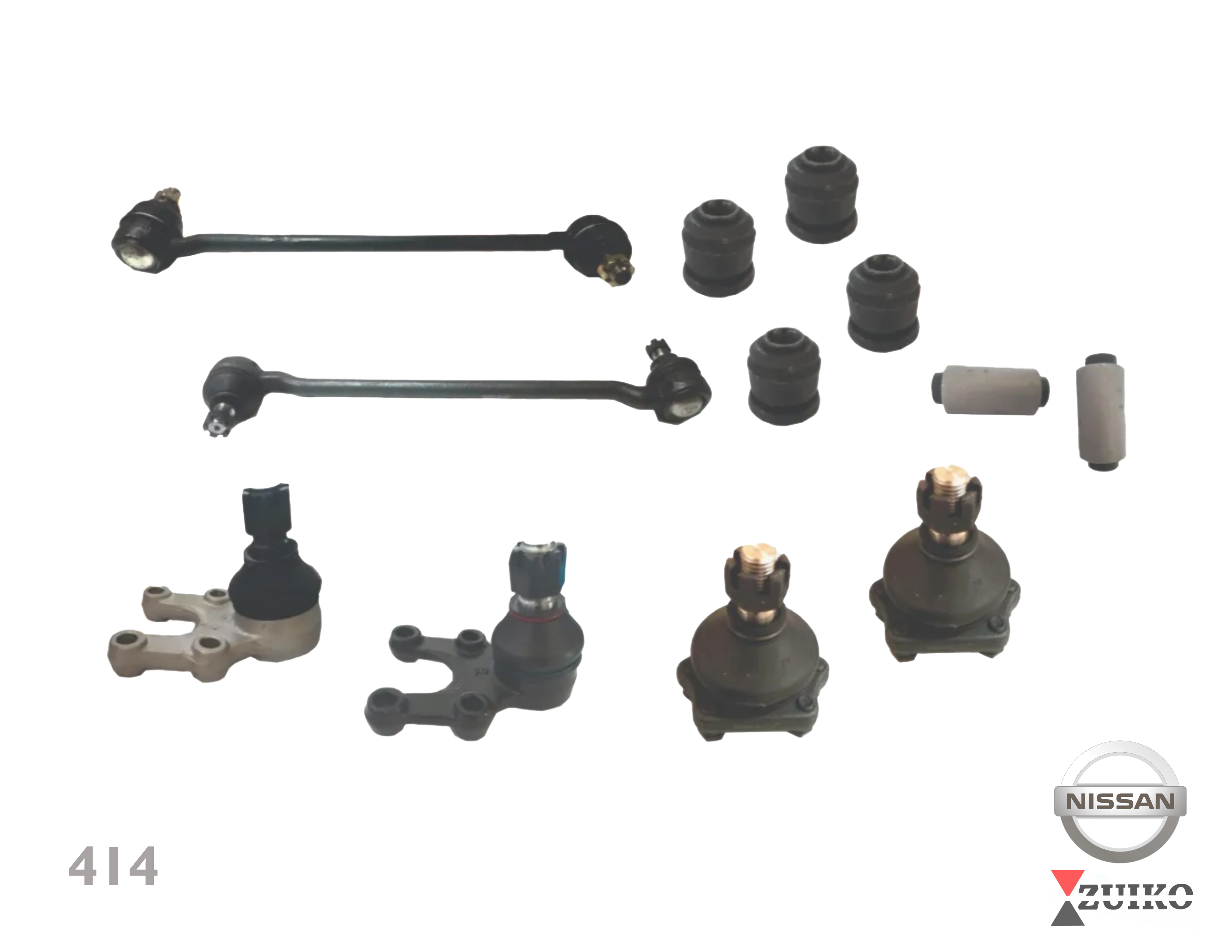 KIT DE 2 ROTULAS SUPERIORES, 2 ROTULAS INFERIORES, Y 6 BUJES DE HORQUILLA PARA NISSAN FRONTIER 4X2 98-04 MARCA ZUIKO ORIGINAL 12 MESES DE GARANTIA ENVIO GRATIS